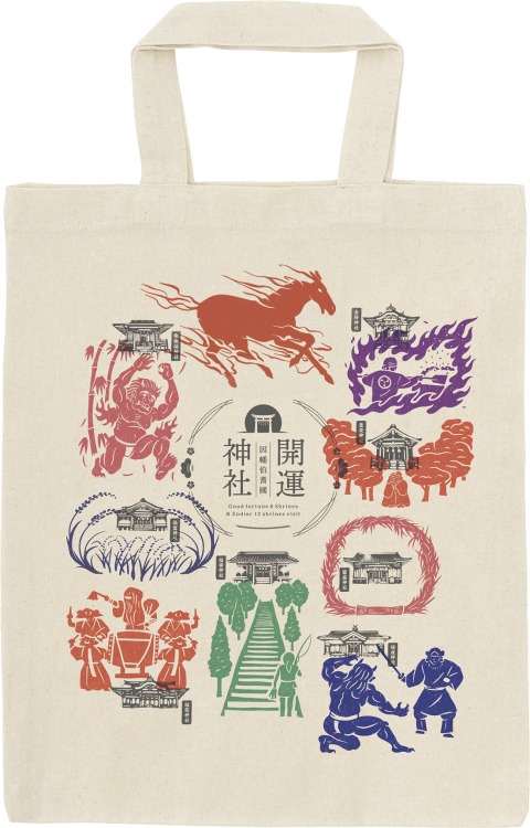 旅印手帖と同じスタンプで楽しめる手ぬぐいとトートバッグもあります!「開運八社・干支所縁十二社巡り」のお供やお守りとしてお使いいただけます。