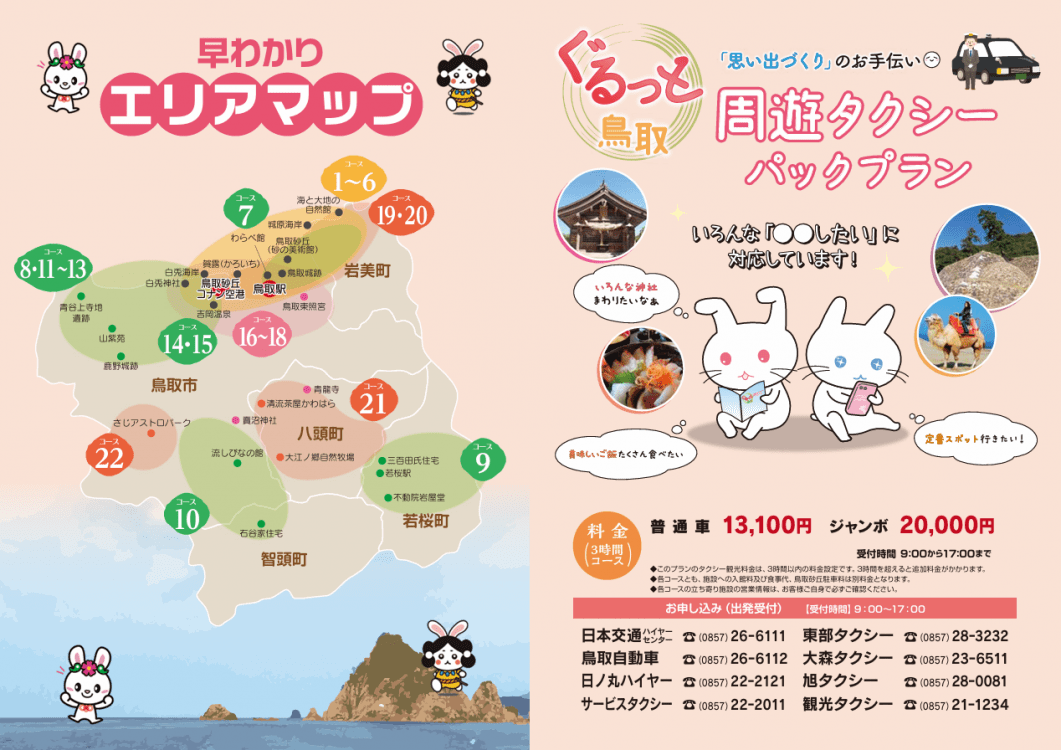鳥取ハイヤー共同組合が行っている“ぐるっと鳥取「周遊タクシーパックプラン」。