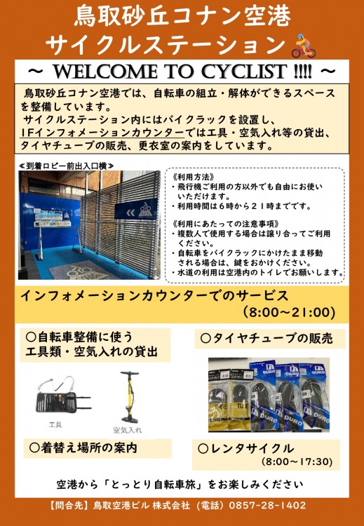 サイクリストに優しい宿では以下のサービスを提供しています。