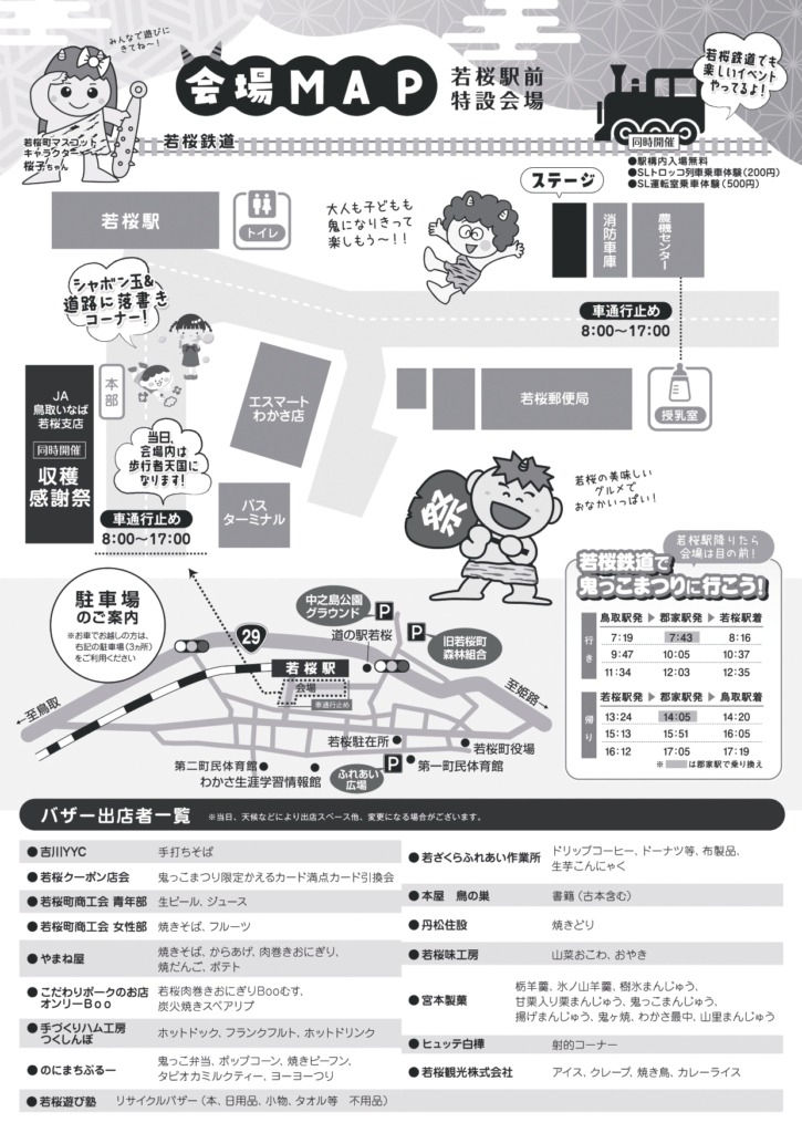 若桜町内事業者や若桜町にゆかりのあるバザー出店やステージイベントなどでお楽しみください♪