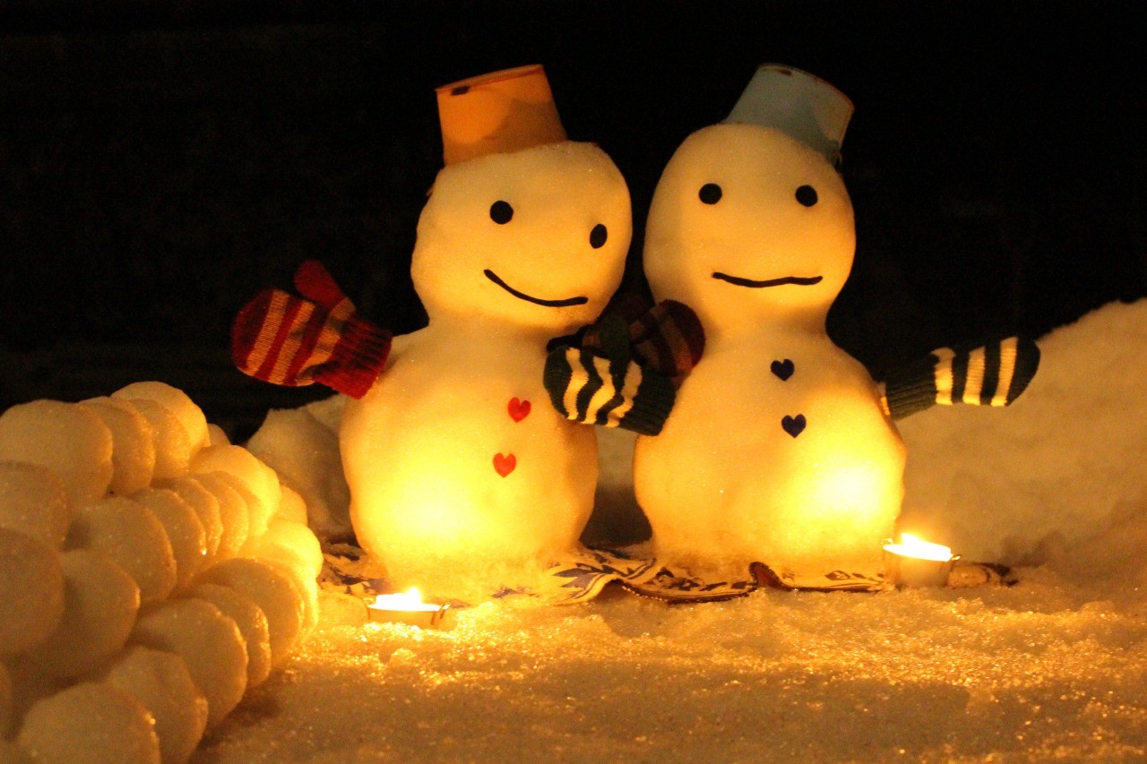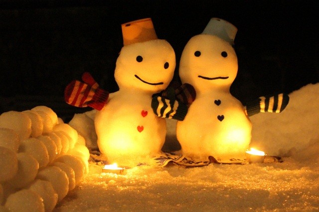 夕方から雪(または竹)の灯篭に火が灯ります。ほんわりとした灯りにほっこりしてください。17:00に一斉点灯します。
