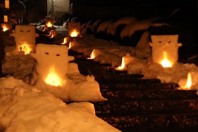 各種イベントや屋台の出店の他、夕方には智頭宿一円から智頭駅前まで、雪や竹の灯篭がずらりと並ぶ風景が見られます。とても幻想的ですよ♪