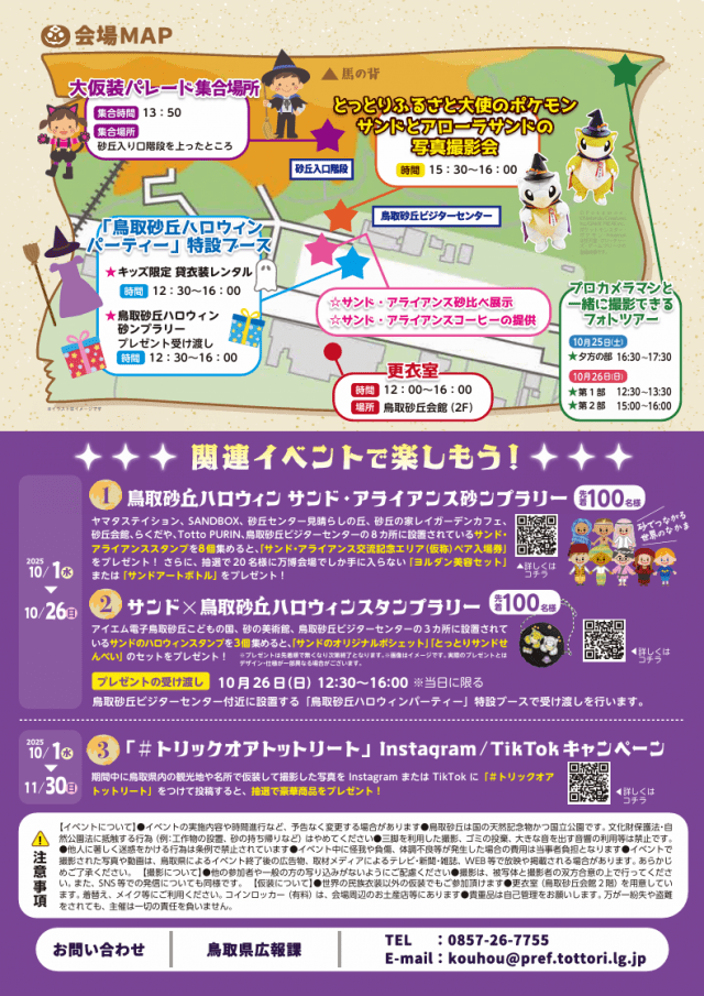 また、とっとりふるさと大使のポケモン・サンドとアローラサンドが、特別仕様のハロウィンコスチュームで登場します!