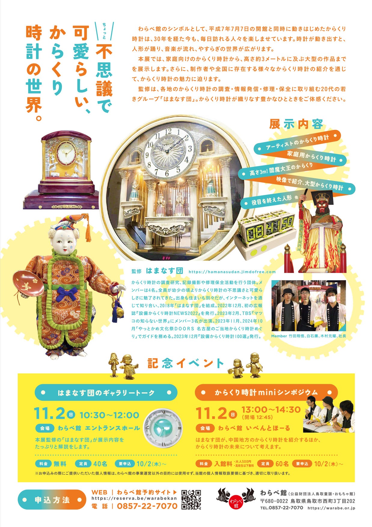 家庭向けのからくり時計から、高さ約3メートルに及ぶ大型の作品までを展示。さらに、制作者や全国に存在する様々なからくり時計の紹介を通じて、からくり時計の魅力に迫ります。