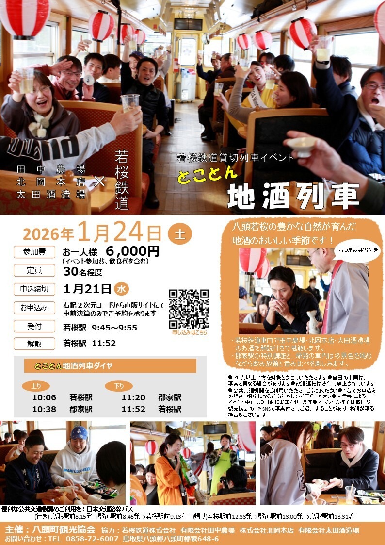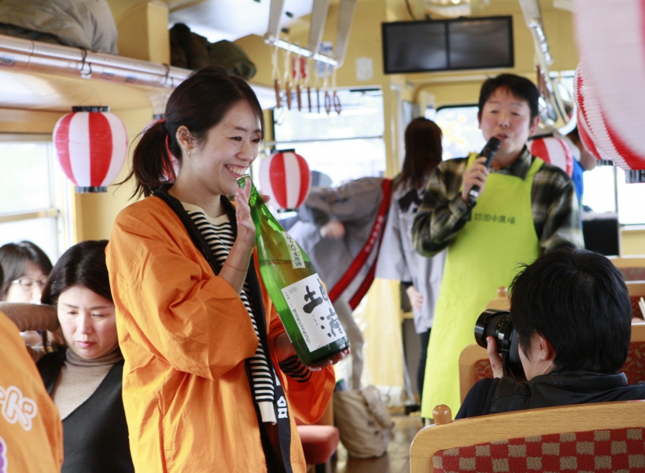 1.若桜鉄道車内で田中農場・北岡本店・太田酒造場のお酒を解説付きで堪能します。