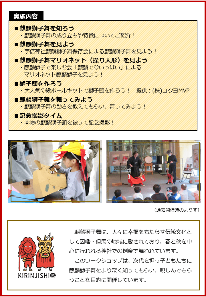 協力:(株)コクヨMVP、宇倍神社麒麟獅子舞保存会、麒麟獅子で楽しむ会「麒麟で♥いっぱい」