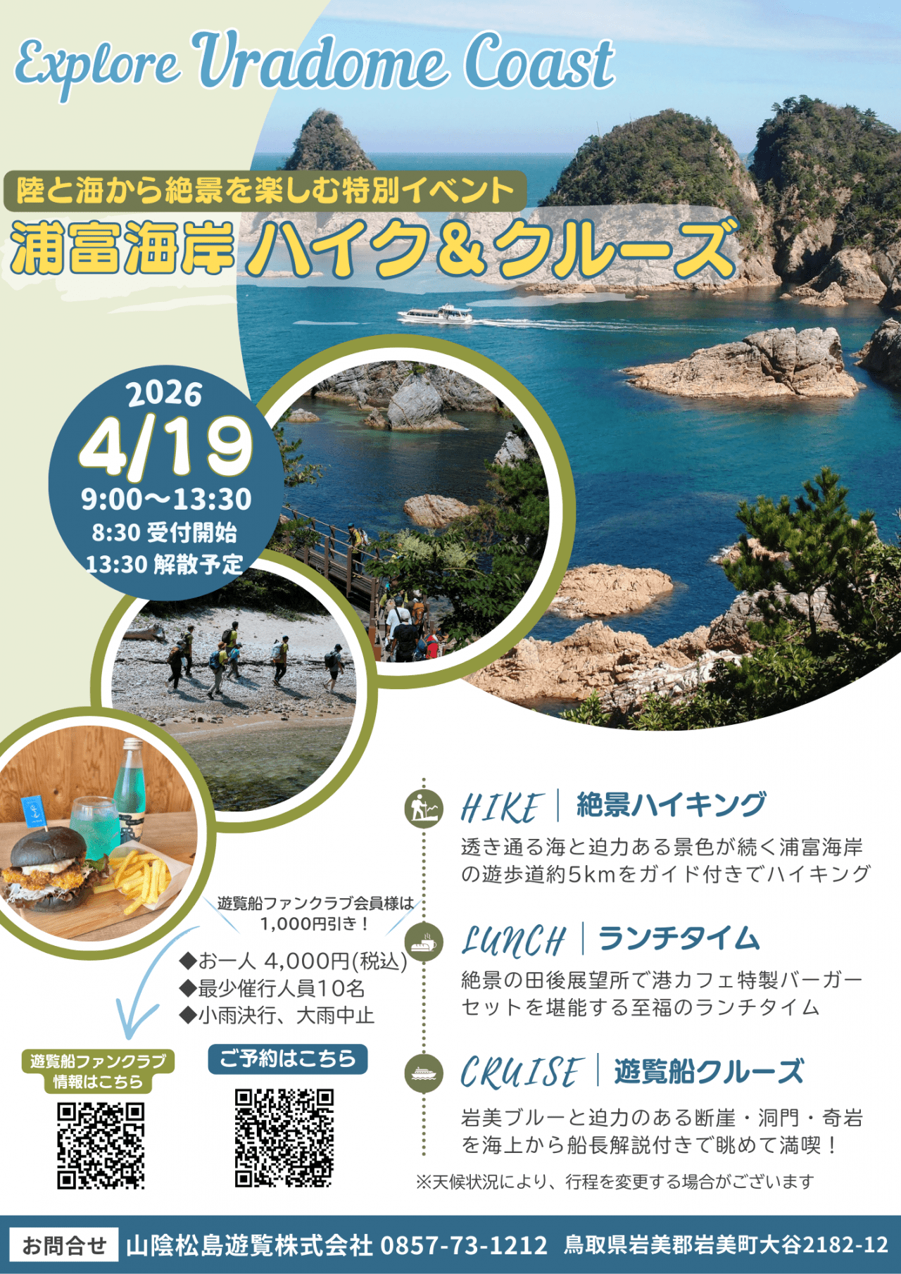 日本海の絶景が広がる 浦富海岸 を、陸と海の両方から楽しむ特別イベントを開催します。