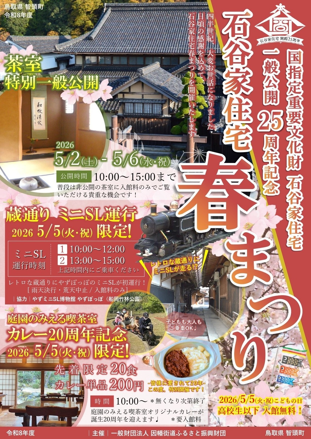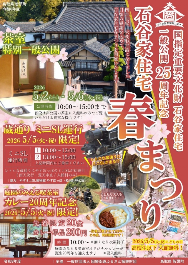 四半世紀、大変お世話になりました。日頃の感謝を込めて、一般公開25周年記念イベント「石谷家住宅 春まつり」を開催いたします!