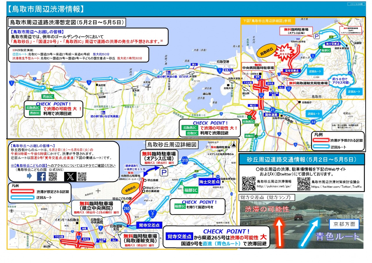 ★以下のWebサイトおよびTwitterで鳥取砂丘周辺の渋滞状況がご覧いただけます(情報提供:5月2日(土)から5月5日(火・祝)まで)