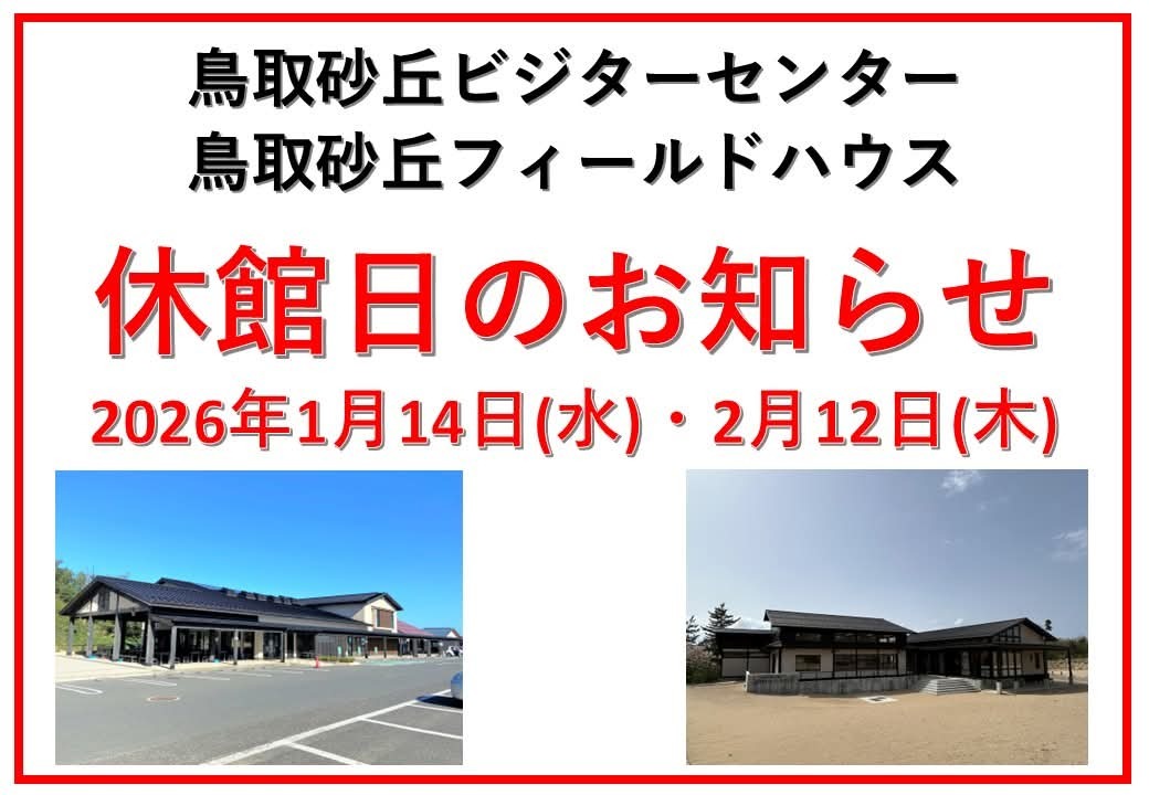 鳥取砂丘ビジターセンター 及び 鳥取砂丘フィールドハウス 臨時休館のお知らせ
