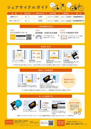 無人で24時間いつでも利用・返却可能なシェアサイクル(電動アシスト自転車)を利用して、鳥取観光をお楽しみください。