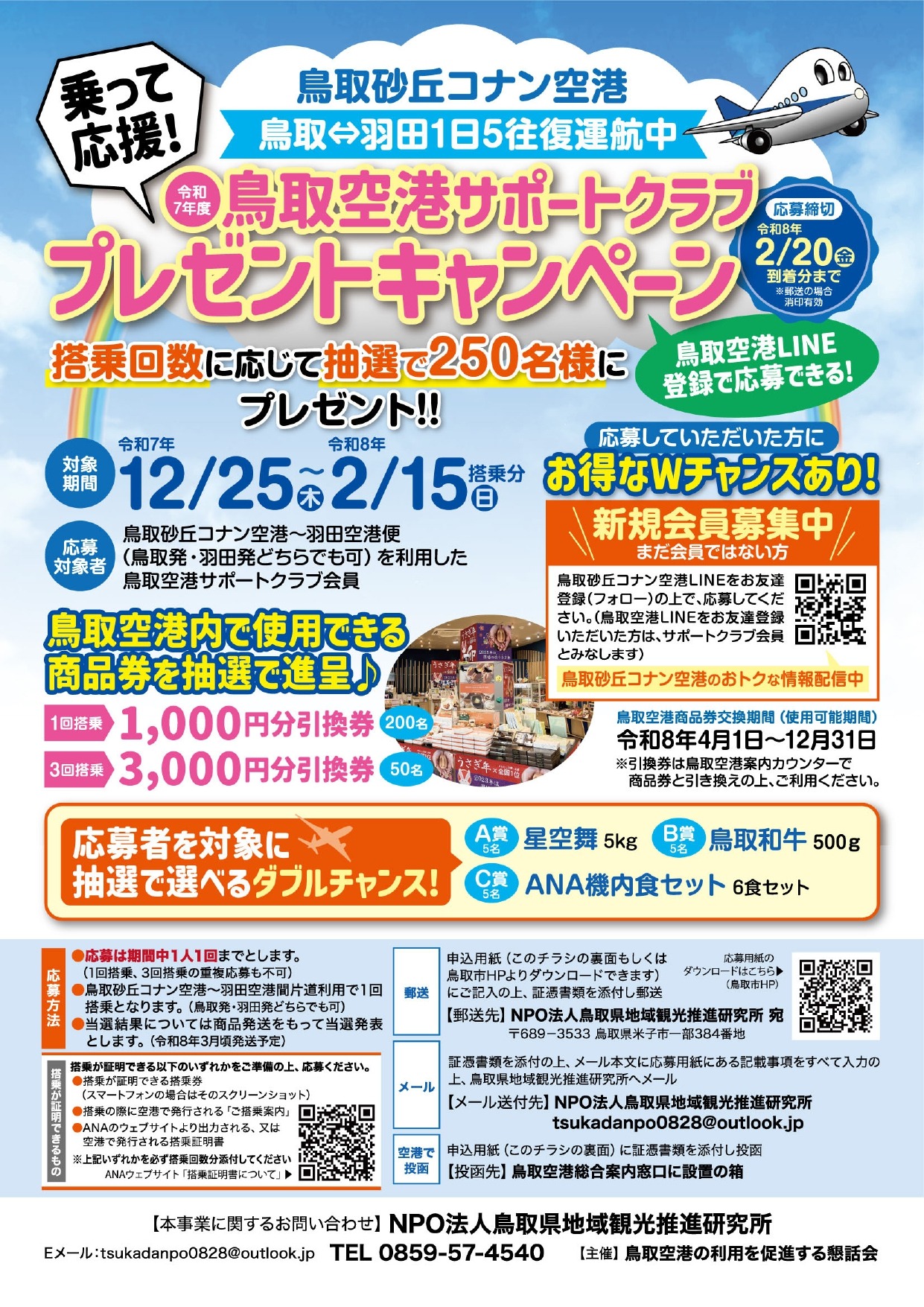 乗って応援!鳥取空港サポートクラブ 利用促進プレゼントキャンペーン