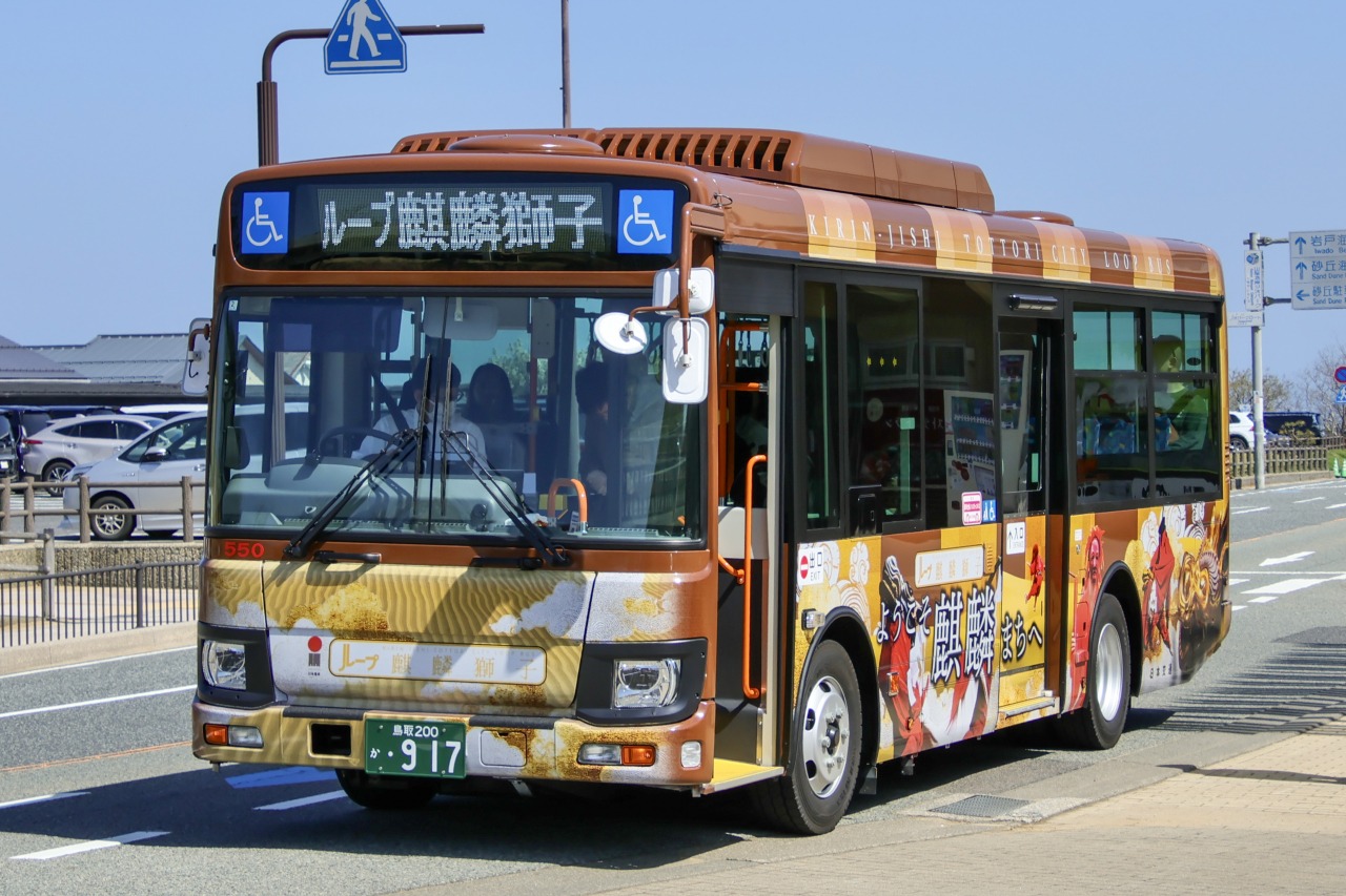 觀光周遊巴士「麒麟獅子循環巴士」從鳥取車站出發,行經鳥取砂丘、鳥取港、鳥取城跡等主要景點,在景點間循環行駛。。